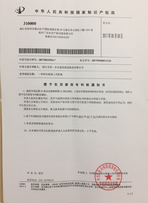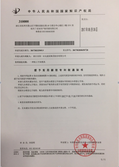 ½üÈÕ£¬BG´óÓÎÒ»ÆÚΧ¿Ñ¹¤³Ì±±Æ¬Ê©¹¤¢ó±êÏîÄ¿²¿ÊÕµ½¹ú¼Ò֪ʶ²úȨ¾ÖÊÚÓèʵÓÃÐÂÐÍרÀûȨµÄ֪ͨÊ飬ÓɸñêÏîÄ¿²¿Ñз¢µÄ¡¶Ò»ÖÖŤÍõ×Ö¿éÄ£°å¡·ºÍ¡¶Ò»ÖÖÅÅË®°åÊ©¹¤µÄ׮ѥ¡·»ñµÃʵÓÃÐÂÐÍרÀû¡£