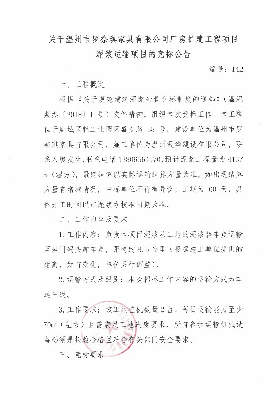¹ØÓÚÎÂÖÝÊÐÂÞÄÎç÷¼Ò¾ßÓÐÏÞ¹«Ë¾³§·¿À©½¨¹¤³ÌÏîÄ¿ÄཬÔËÊäµÄ¾º±êͨ¸æ