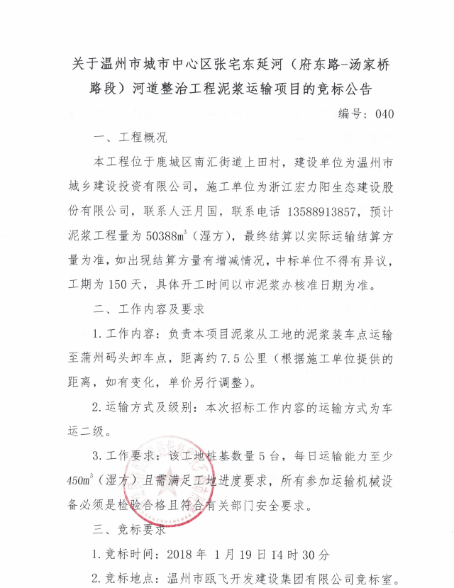 ¹ØÓÚÎÂÖÝÊж¼»áÖÐÐÄÇøÕÅÕ¬¶«ÑÓºÓ£¨¸®¶«Â·-ÌÀ¼ÒÇÅ·¶Î£©ºÓÁ÷ÕûÖ餳ÌÄཬÔËÊäÏîÄ¿µÄ¾º±êͨ¸æ