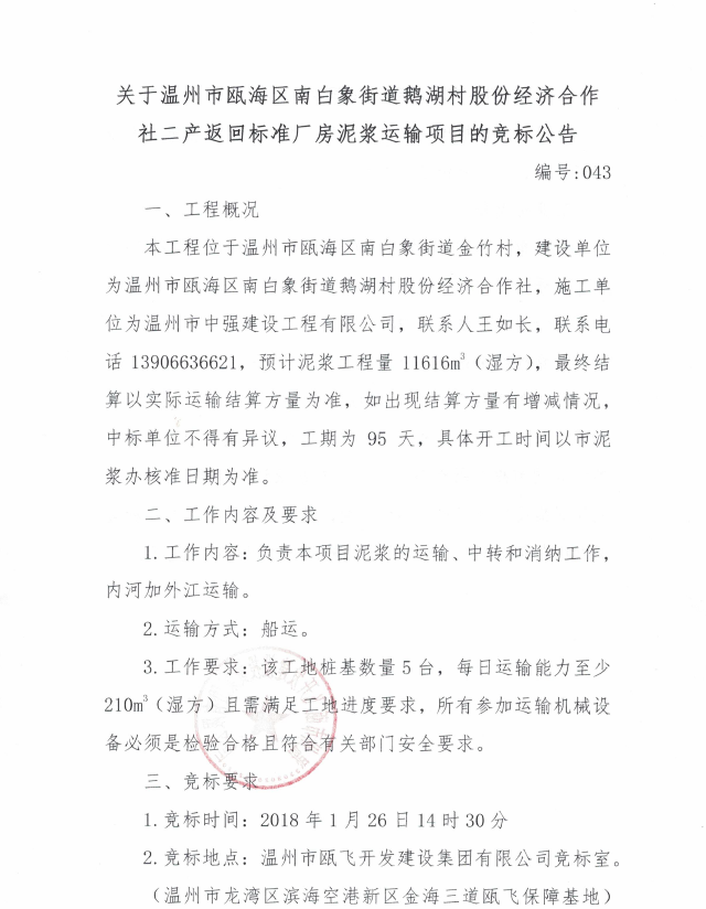 ¹ØÓÚÎÂÖÝÊÐ걺£ÇøÄϰ×Ïó½ÖµÀ¶ìºþ´å¹É·Ý¾­¼ÃÏàÖúÉç¶þ²ú·µ»Ø±ê×¼³§·¿ÄཬÔËÊäÏîÄ¿µÄ¾º±êͨ¸æ