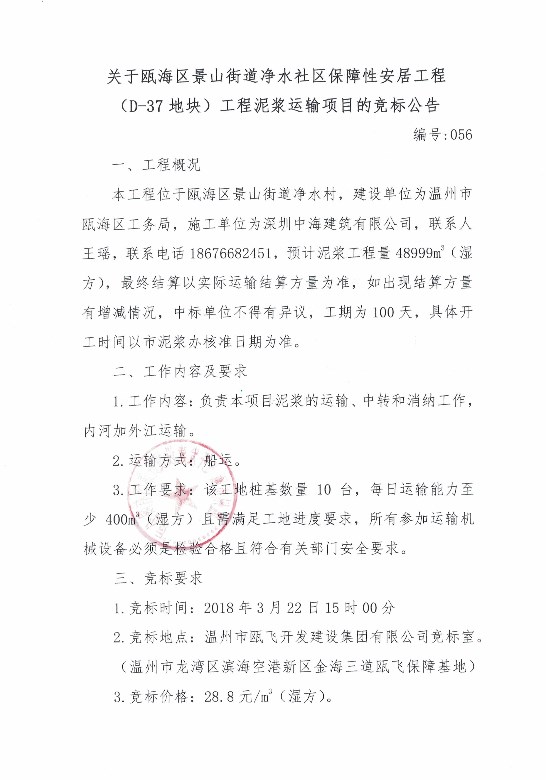 ¹ØÓÚ걺£Çø¾°É½½ÖµÀ¾»Ë®ÉçÇø°ü¹ÜÐÔ°²¾Ó¹¤³Ì£¨D-37µØ¿é£©¹¤³ÌÄཬÔËÊäÏîÄ¿µÄ¾º±êͨ¸æ