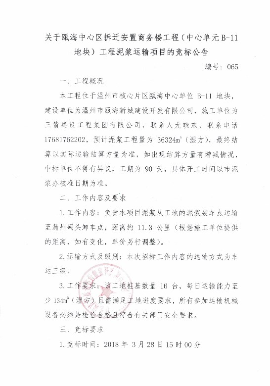 ¹ØÓÚ걺£ÖÐÐÄÇø²ðǨ°²¶ÙÉÌÎñÂ¥¹¤³Ì£¨ÖÐÐĵ¥Î»B-11µØ¿é£©¹¤³ÌÄཬÔËÊäÏîÄ¿µÄ¾º±êͨ¸æ