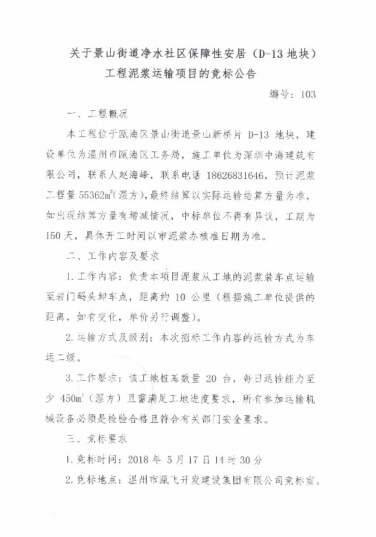 ¹ØÓÚ¾°É½½ÖµÀ¾»Ë®ÉçÇø°ü¹ÜÐÔ°²¾Ó£¨D-13µØ¿é£©¹¤³ÌÄཬÔËÊäÏîÄ¿µÄ¾º±êͨ¸æ