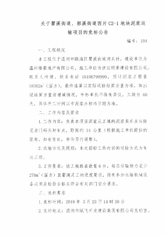 ¹ØÓÚöÄϪ½ÖµÀ¡¢¹ùϪ½ÖµÀÎ÷ƬC2-1µØ¿éÄཬÔËÊäÏîÄ¿µÄ¾º±êͨ¸æ