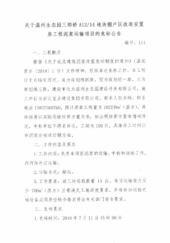 ¹ØÓÚÎÂÖÝÉú̬԰ÈýÀÉÇÅA12/14µØ¿éÅï»§Çø¸ïа²¶Ù·¿¹¤³ÌÄཬÔËÊäÏîÄ¿µÄ¾º±êͨ¸æ