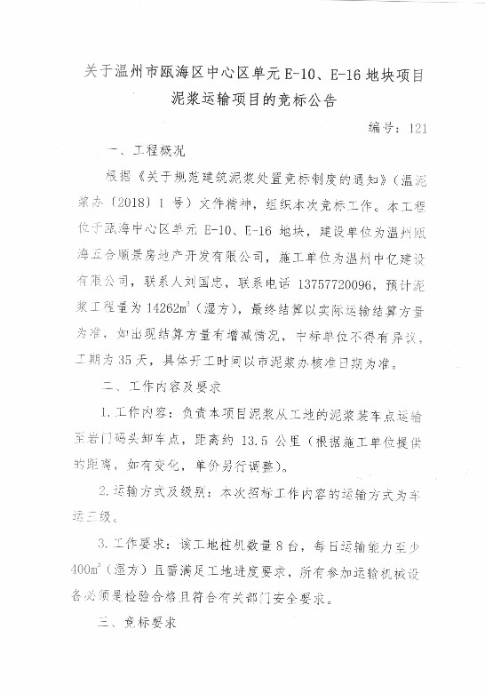¹ØÓÚÎÂÖÝÊÐ걺£ÇøÖÐÐĵ¥Î»E-10¡¢E-16µØ¿éÏîÄ¿ÄཬÔËÊäÏîÄ¿µÄ¾º±êͨ¸æ