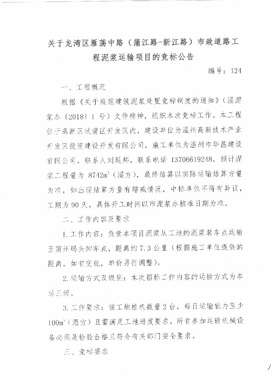 ¹ØÓÚ걺£Çø»·É½Â·£¨ÎÂÈð´óµÀ-¼ÖÕ¬Î÷䤺ӣ©½¨É蹤³ÌÒ»±êÄཬÔËÊäÏîÄ¿µÄ¾º±êͨ¸æ