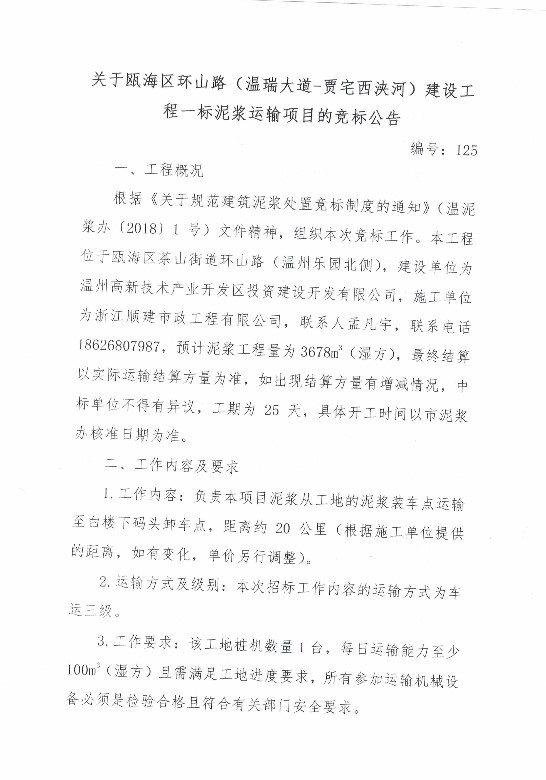 ¹ØÓÚ걺£Çø»·É½Â·£¨ÎÂÈð´óµÀ-¼ÖÕ¬Î÷䤺ӣ©½¨É蹤³ÌÒ»±êÄཬÔËÊäÏîÄ¿µÄ¾º±êͨ¸æ