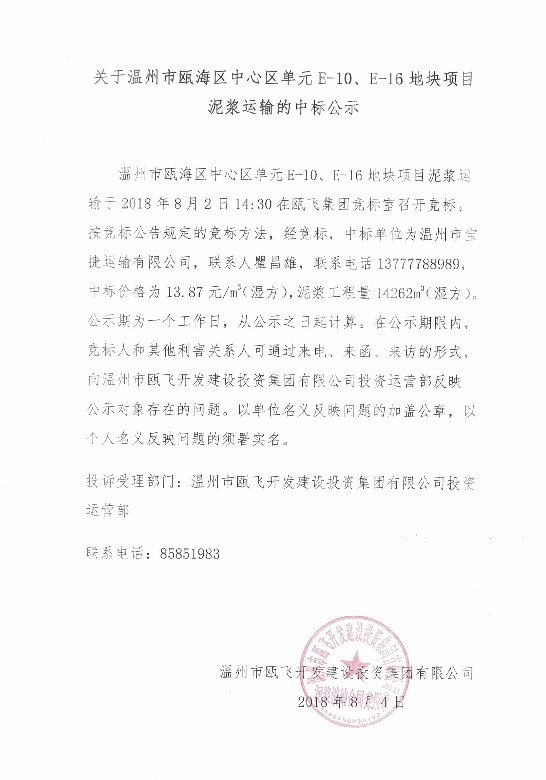 ¹ØÓÚÎÂÖÝÊÐ걺£ÇøÖÐÐĵ¥Î»E-10¡¢E-16µØ¿éÏîÄ¿ÄཬÔËÊäÏîÄ¿µÄÖб깫ʾ